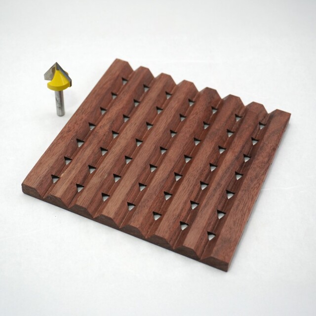 60度V溝ビットです。このビットで、板に7本、等間隔に直角の溝を切れば、六角形の箱が作ることができます。