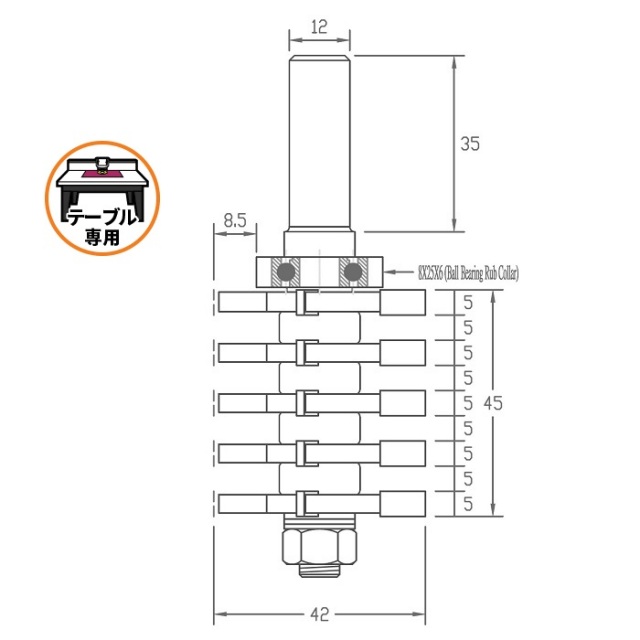・このビットは、必ずルーターテーブルでご使用ください。手持ちの加工は大変危険です。