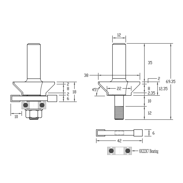 | 42mm | 18mm | 12mm | 35mm | ― | 45° | 22mm |